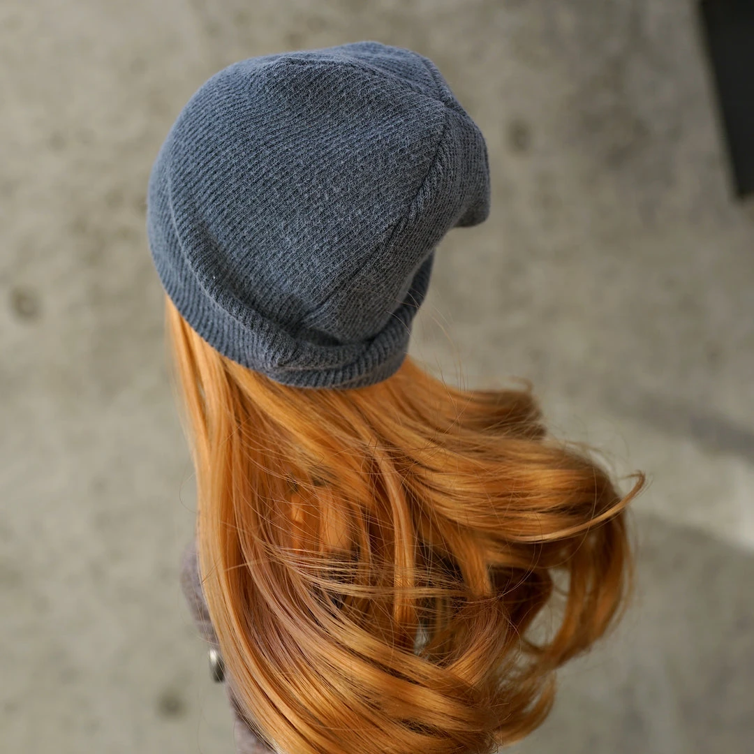 The beanie is double layered, allowing you to tuck in the bottom of the outer layer in and around the back and sides of the head. Made in Kyushu Japan.